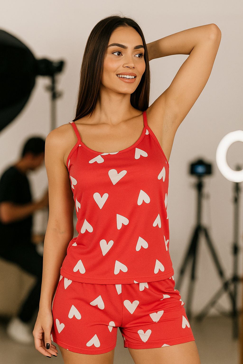 Pijama Feminino Pink com Estampa de Corações – Conforto e Charme para Suas Noites